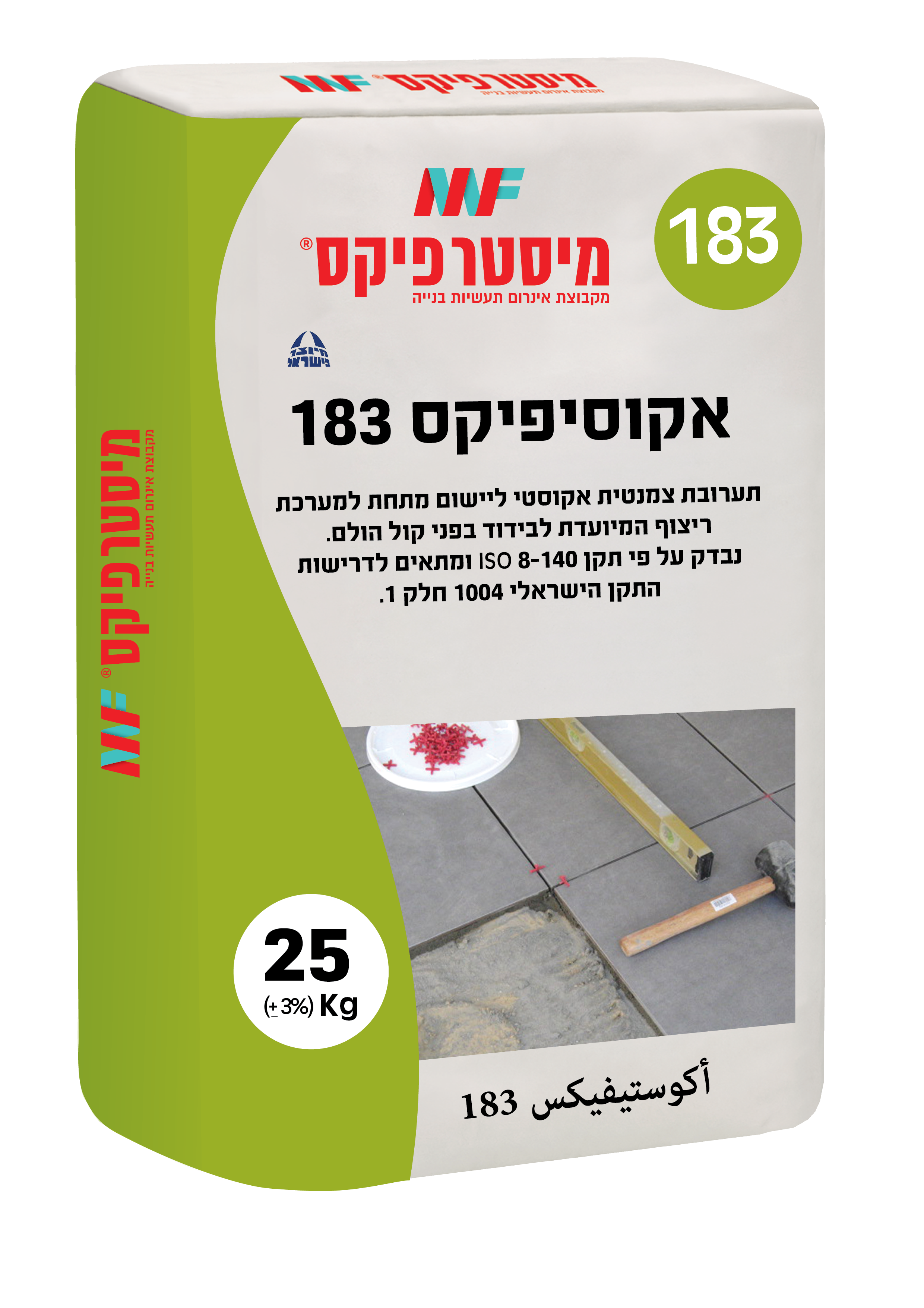 ✓תערובת צמנטית בעלת יכולת בידוד אקוסטי בפני קול הולם המתאימה לדרישות ת"י 1004 חלק 1.